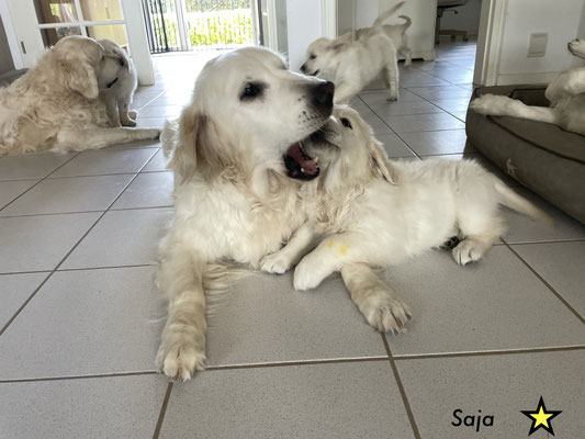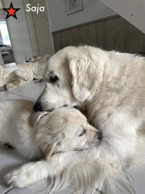 Er hat sich soo gefreut uns zu sehen, genau wie Saja, die ihn ja geliebt hat, als er noch bei uns war. Sie haben kurz geschnüffelt, dann aaah, die kenn ich...Herzchenaugen!