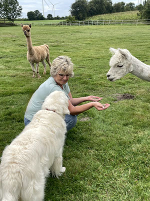 Auf der Koppel bei den Alpakas war für Saja kein Problem...sind wohl nur andere Pferde